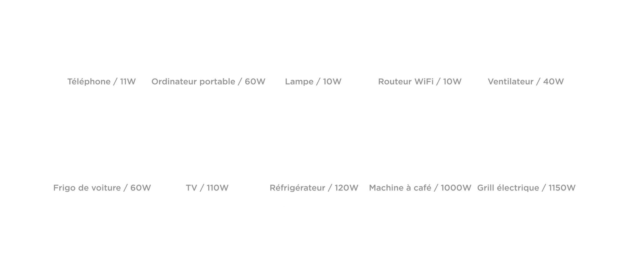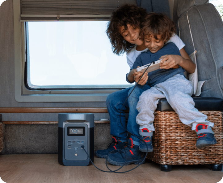 Une puissance de sortie CA de 1 800 W vous permet d'alimenter plus de 90% de vos appareils ménagers. Il peut s'agir de votre four à micro-ondes, de votre réfrigérateur, voire d'une cafetière, en cas de coupure de courant. Vous pouvez également alimenter jusqu'à 13 appareils simultanément lorsque vous êtes en famille. Contrairement à d'autres marques, DELTA 2 empêche la surcharge des appareils allant jusqu'à 2 400 W grâce à la technologie X-Boost.