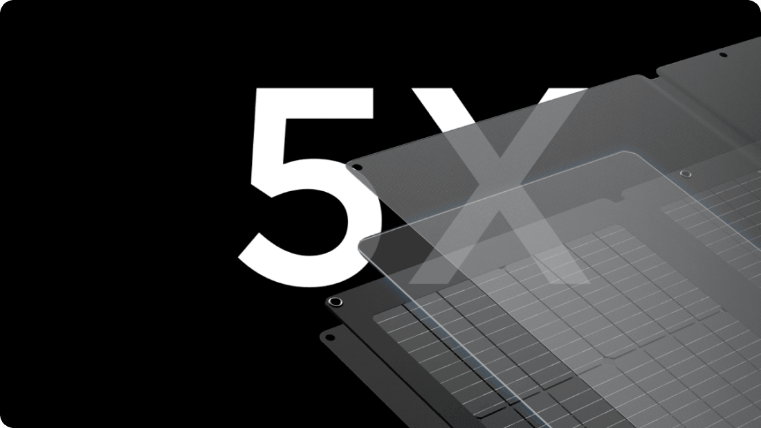 Avec une face principale de 220 W et une face arrière de 155 W pour la lumière ambiante, il permet de capter jusqu’à 25 % d’énergie solaire en plus pour recharger station électrique portable encore plus rapidement. Un taux de conversion allant jusqu’à 23 % garantissant des vitesses de chargement solaire rapides : 0 %-100 % en 2.9 heures (4 jeux), 3,9 heures (3 jeux) et 5,8 heures (2 jeux).