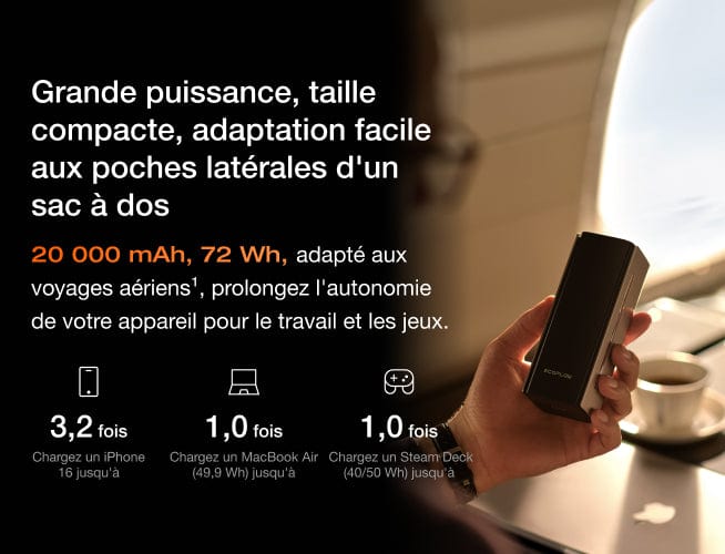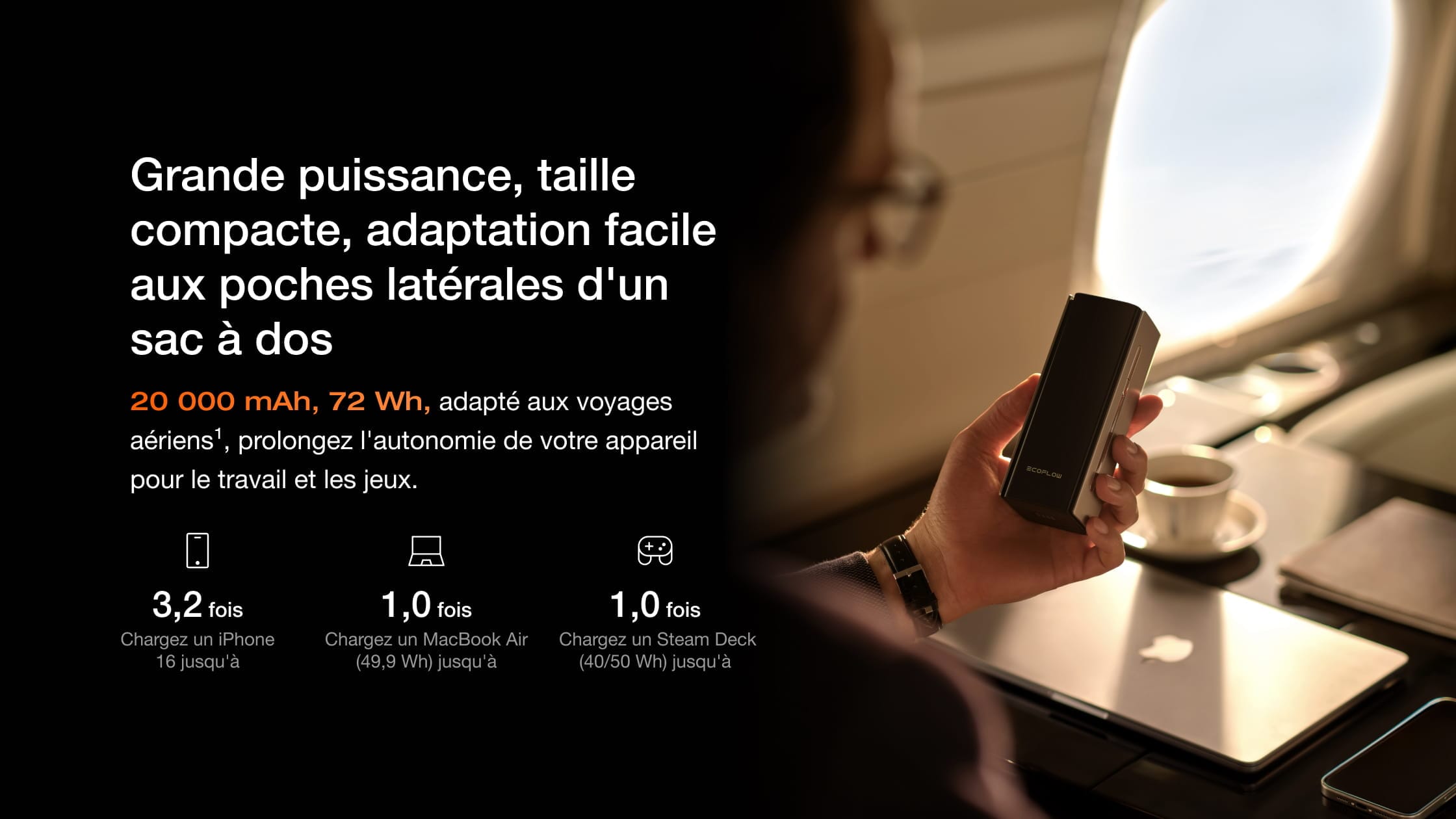 ¹ Les règlements des compagnies aériennes varient selon la région et l’opérateur. Veuillez confirmer les restrictions de batterie auprès de votre compagnie aérienne avant le voyage.
