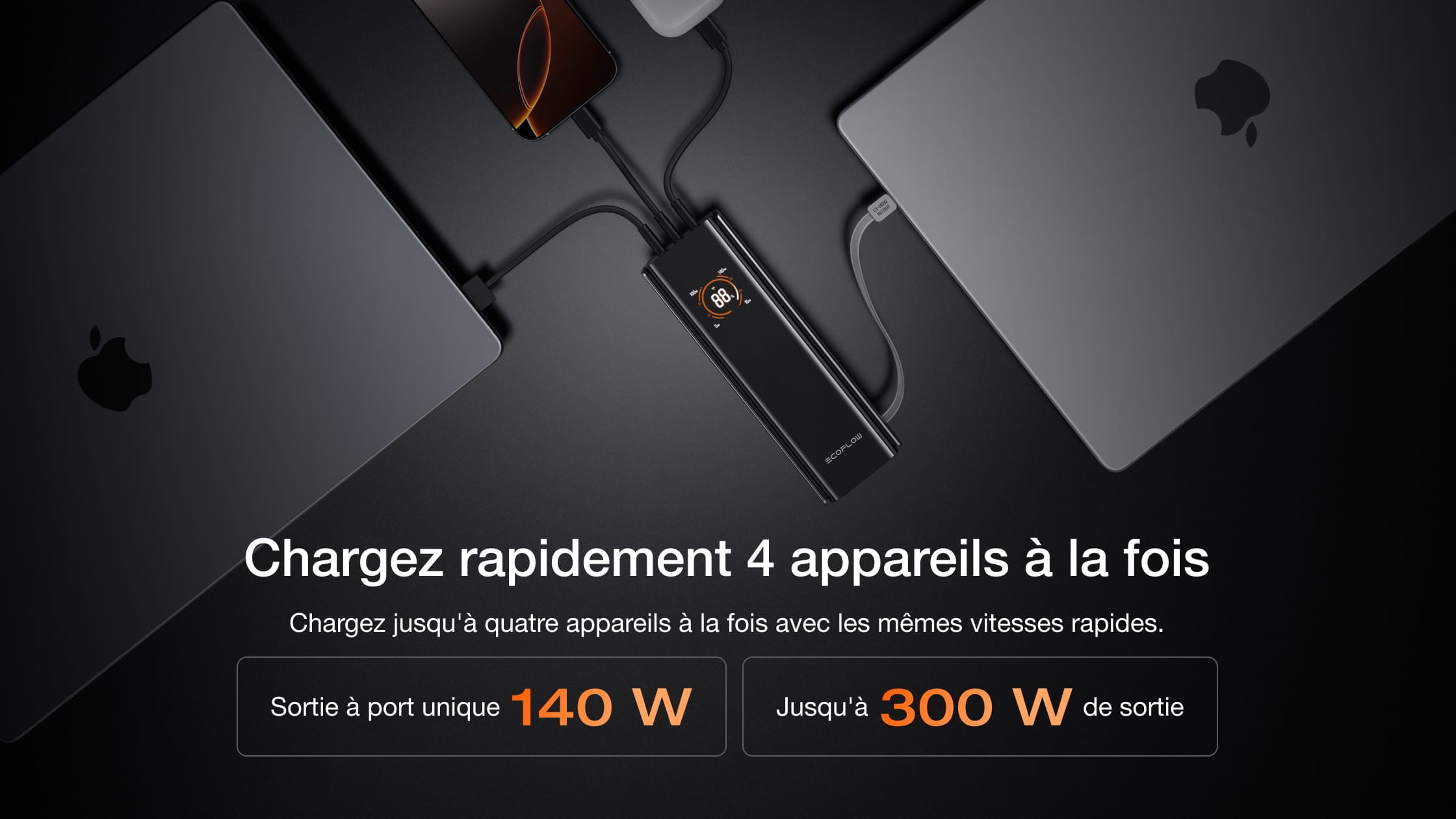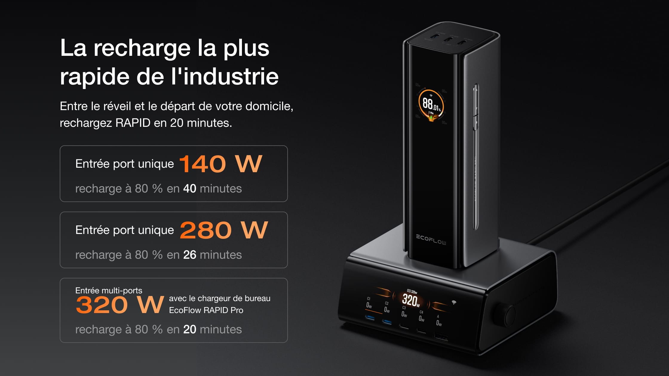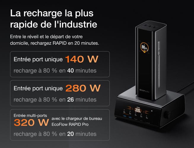 Spécifications - EcoFlow RAPID Pro Power Bank (27,650mAh, 300W, 140W Built-in Cable)