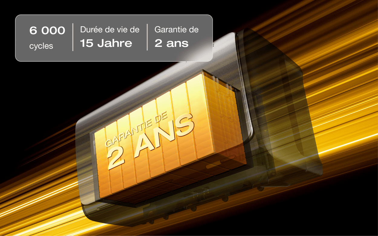 Équipé de cellules de batterie LFP avancées, STREAM délivre jusqu'à 6 000 cycles profonds avec une rétention de capacité de 70 % – une durée jusqu'à 3 fois plus longue que les batteries traditionnelles. Cela signifie jusqu'à 15 ans d'utilisation fiable, avec une garantie de 2 ans.
