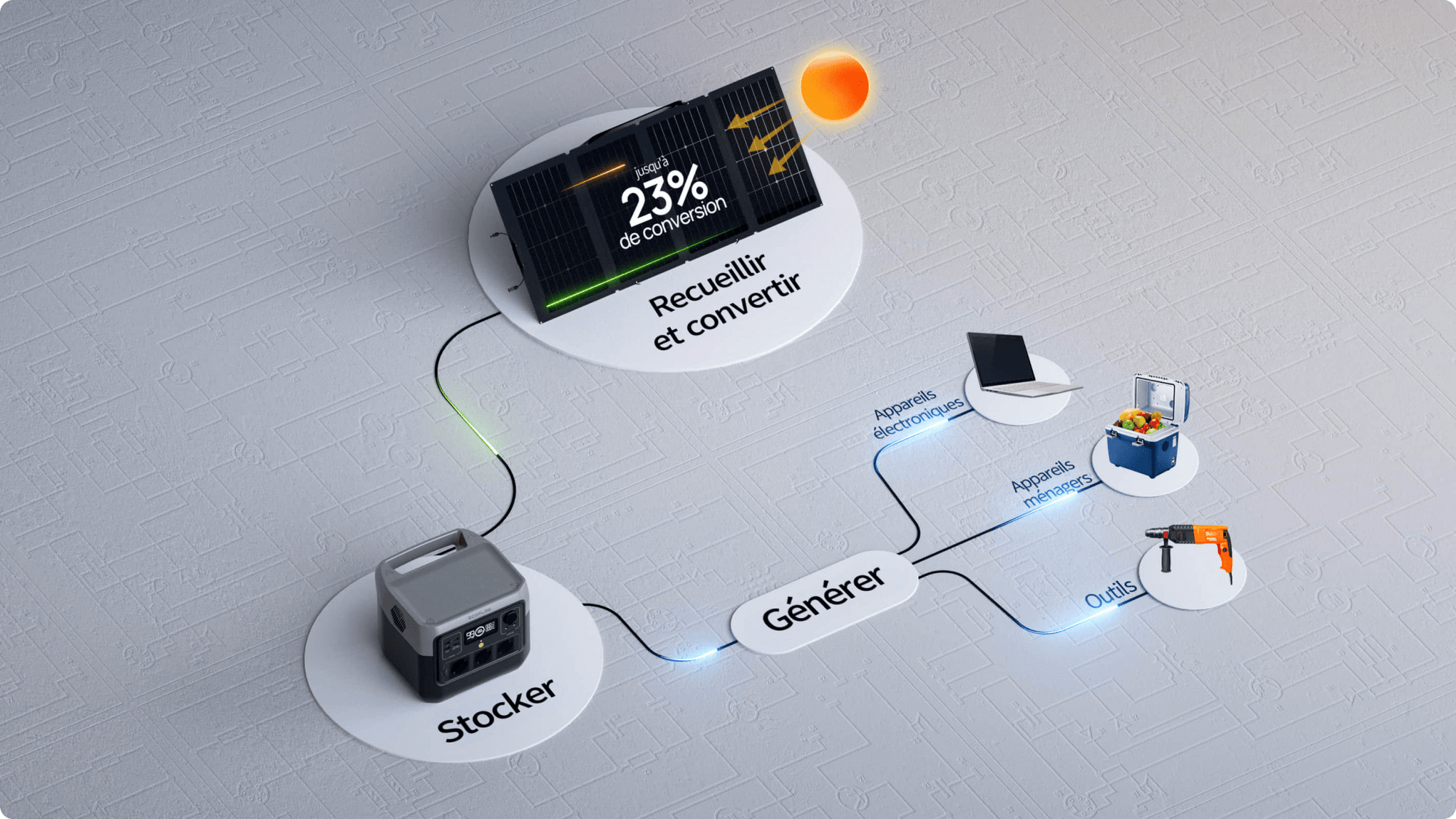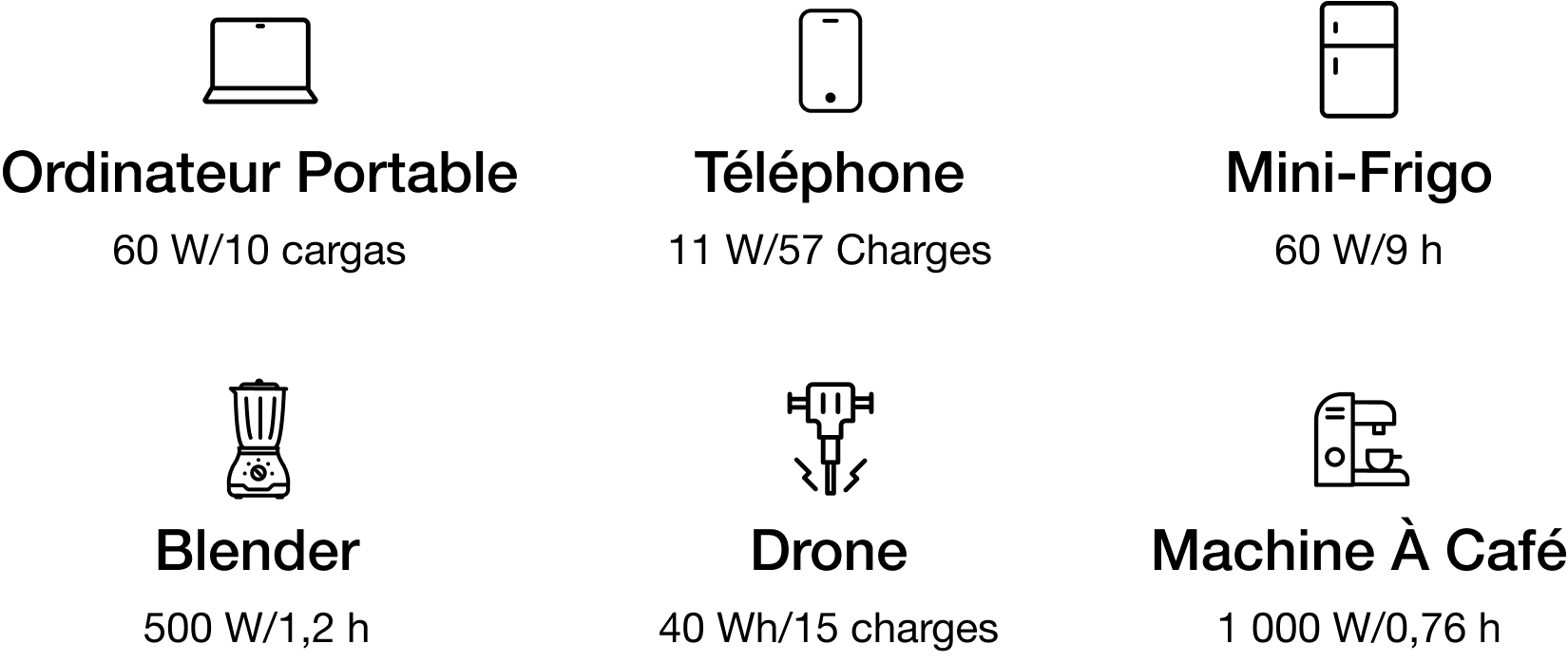 • Doté d'une capacité de 768 Wh et d'une entrée solaire de 220 W, le générateur solaire peut produire jusqu'à 1,8 kWh par jour.