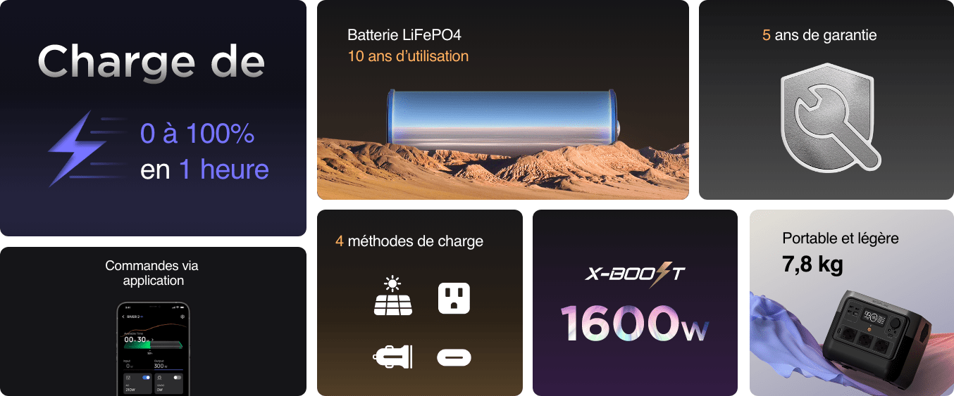 • Une puissance de 1600 W avec le mode X-Boost activé pour alimenter jusqu'à 80 % des appareils essentiels de grande puissance.