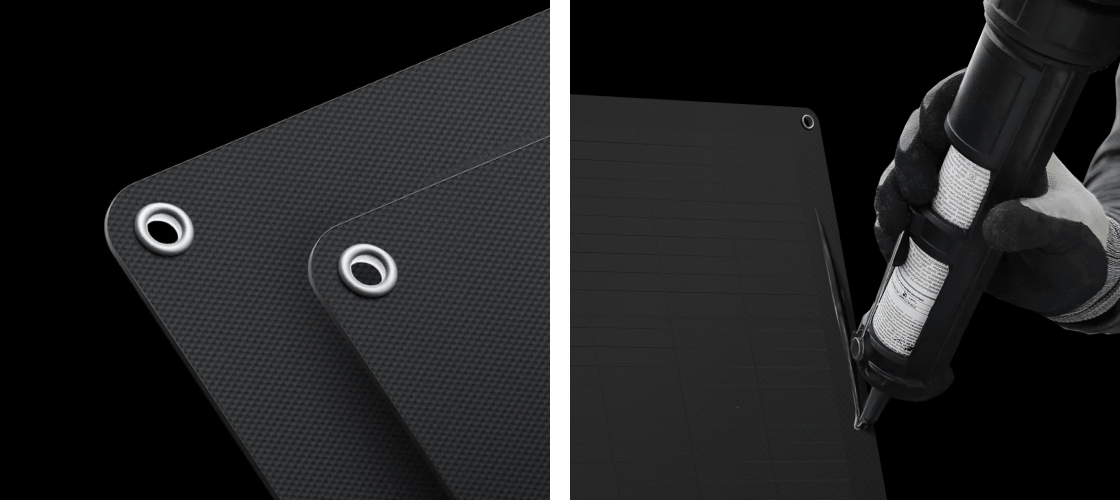 Grâce aux œillets prédécoupés, le panneau solaire flexible peut être suspendu à l’aide de crochets ou fixé solidement sur une surface à l'aide de colle pour une installation stable sur votre balcon.
