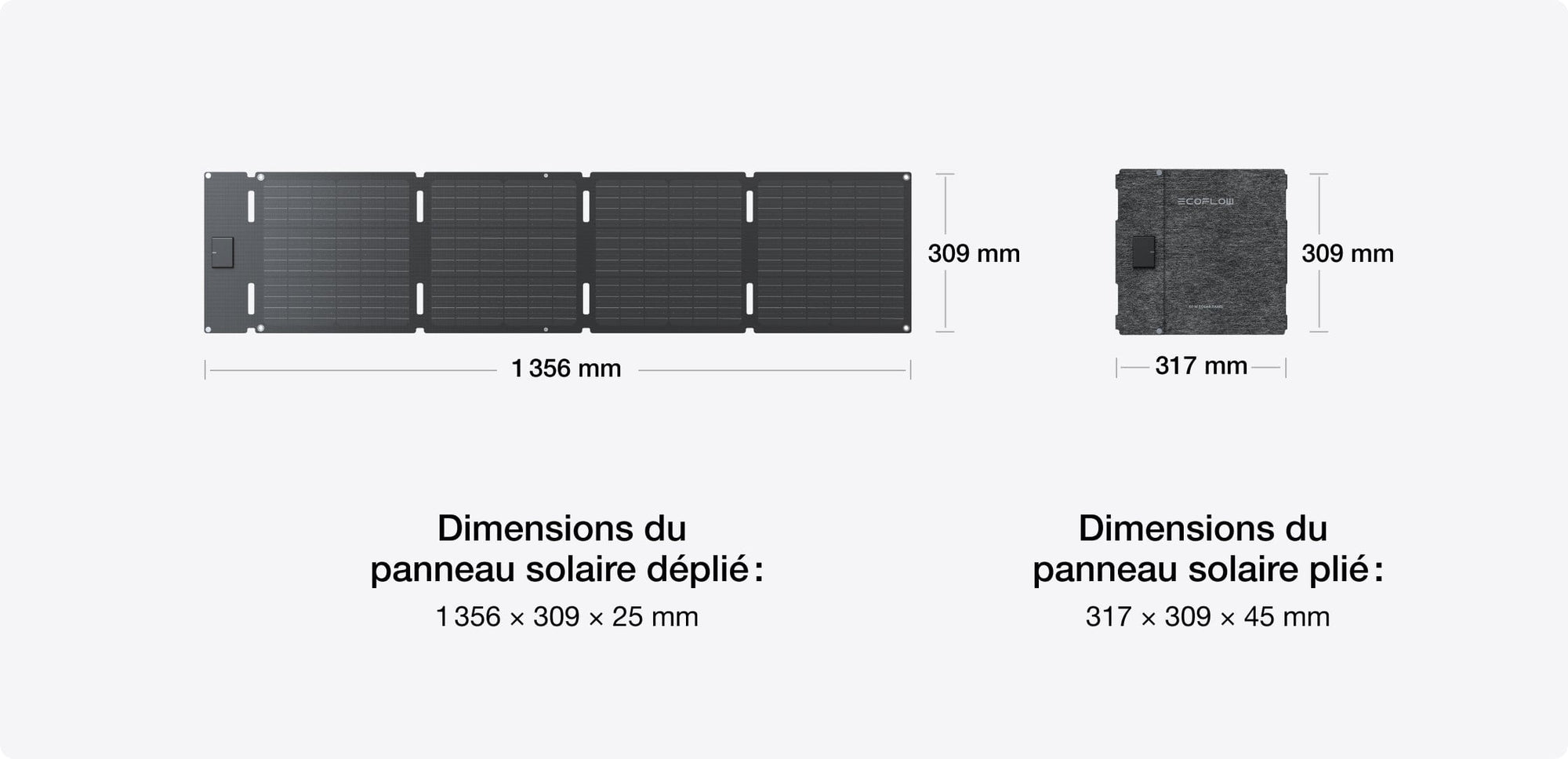 Grâce à sa structure en quatre parties, ce panneau réduit considérablement sa taille une fois plié, ce qui lui permet de s'adapter facilement à des espaces compacts tels que des sacs à dos, des SUV ou des minifourgonnettes.