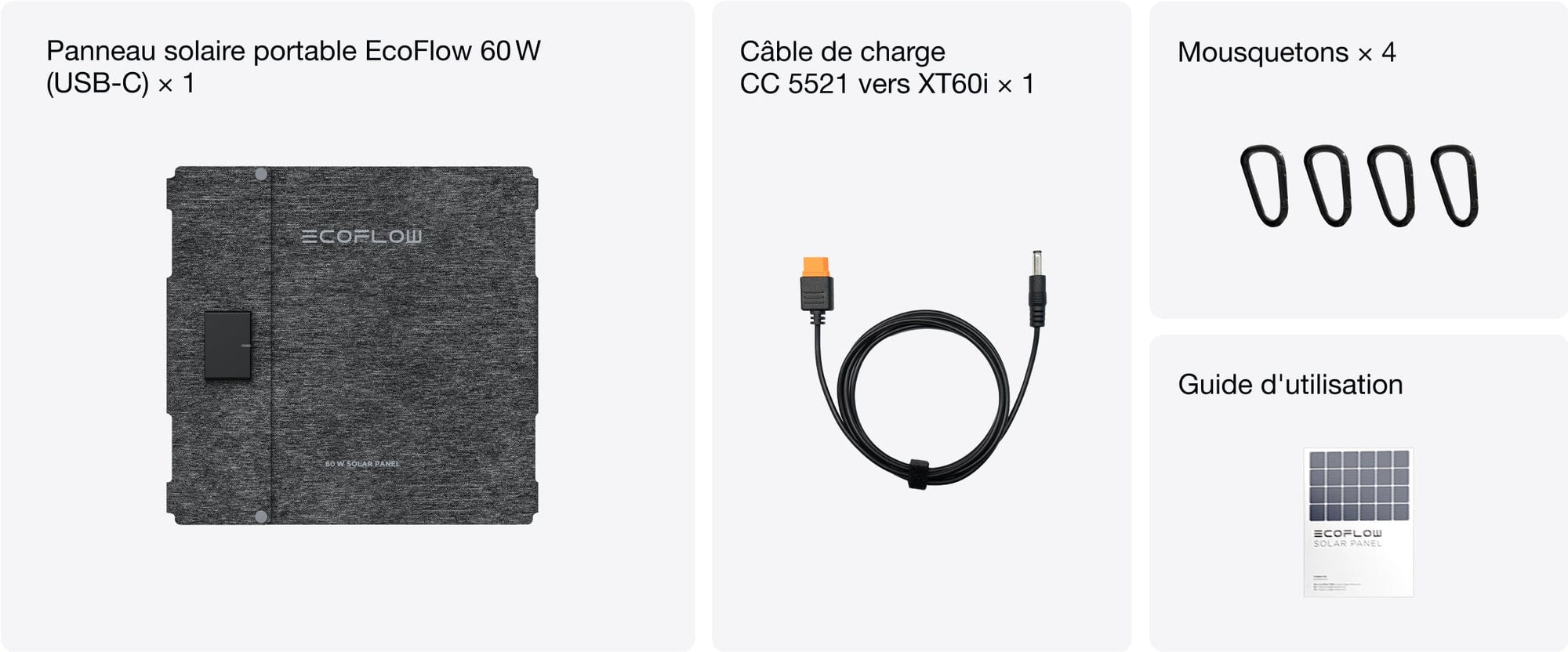 Avec sa conception compacte et son poids léger, le Panneau solaire portable EcoFlow 60 W s'associe parfaitement aux batteries solaires de la gamme RIVER, vous offrant une expérience de charge simple et efficace.
