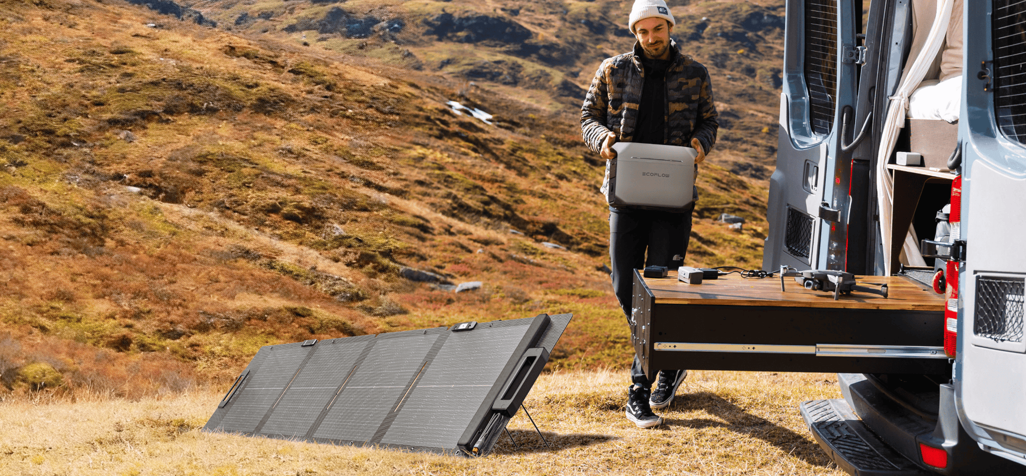 * Si vous devez accrocher des panneaux solaires sur de longues périodes, utilisez des panneaux solaires rigides. Les panneaux solaires portables légers ne sont pas recommandés.