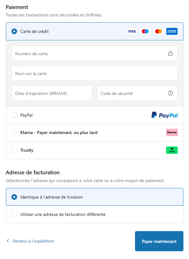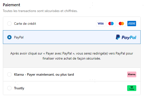 Klarna propose différentes options de paiement, qui peuvent varier en fonction de votre pays et du montant de la transaction. Voici comment cela fonctionne :
