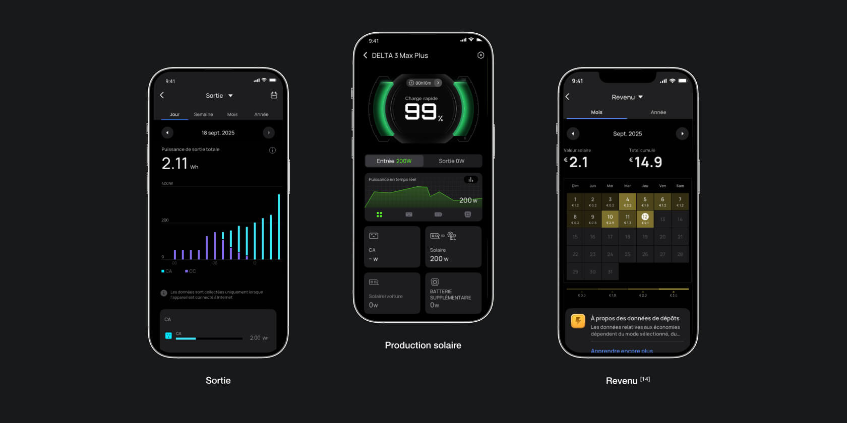 Le DELTA 3 Max Plus optimise intelligemment la consommation d'énergie pour aider à réduire vos factures d'électricité tout en alimentant votre foyer de façon durable. Programmez des tâches de charge automatisées pendant les heures creuses du soir et des tâches de décharge pendant la journée.
